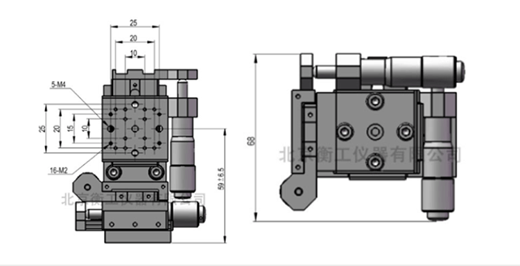 衡工三維位移臺光學(xué)實驗側(cè)面安裝XYZ行程25微調(diào)精準(zhǔn)定位滑臺手動HGAM303