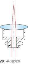 透鏡的中心也稱(chēng)為向心性或離心性,是根據(jù)光束偏差δ(方程式1)而指定的。一旦給定了光束偏差,則可以通過(guò)一種簡(jiǎn)單的關(guān)系來(lái)計(jì)算楔角W(方程式2)。 透鏡的離心量是機(jī)械軸與光學(xué)軸物理偏離的距離。透鏡的機(jī)械軸僅為透鏡的幾何軸,是由其外部的柱面來(lái)定義的。 透鏡的光學(xué)軸是由光學(xué)表面來(lái)定義的,它是連接各表面曲率中心的線。要進(jìn)行向心性測(cè)試,請(qǐng)將透鏡置于茶杯中,對(duì)其施壓。 對(duì)透鏡施加的壓力會(huì)自動(dòng)聚集在茶杯中心第一個(gè)表面的曲率中心,并且該中心還會(huì)與 旋轉(zhuǎn)軸對(duì)齊(圖2)。沿著此旋轉(zhuǎn)軸射入的平行光將會(huì)穿過(guò)透鏡,到達(dá)后焦平面的焦點(diǎn)處。當(dāng)透鏡隨著茶杯的旋轉(zhuǎn)而旋轉(zhuǎn)時(shí),透鏡中的任何離心性都會(huì)使聚焦光束分散,并在后焦平面形成一個(gè)半徑為 Δ 的圓軌跡(圖1)。