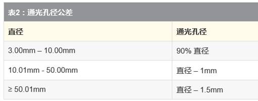 通光孔徑是指光學(xué)元件的直徑或必須滿(mǎn)足各種規(guī)格的光學(xué)元件的尺寸。除通光孔徑以外,制造商并不能確保光學(xué)產(chǎn)品符合指定的規(guī)格。由于生產(chǎn)的限制,實(shí)際上是不可能生產(chǎn)出完全等同于光學(xué)產(chǎn)品的直徑或長(zhǎng)乘以寬的通光孔徑。表2顯示了透鏡的一般通光孔徑。