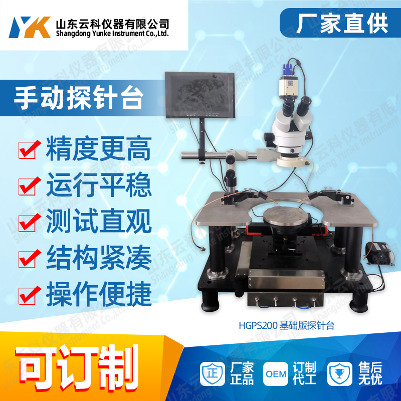 探針臺主要應(yīng)用于半導(dǎo)體行業(yè)、光電行業(yè)、集成電路以及封裝,復(fù)雜、高速器件的精密電氣測量的研發(fā),旨在確保質(zhì)量及可靠性,并縮減研發(fā)時間和器件制造工藝的成本。HGPS200 基礎(chǔ)版探針臺是一款配置齊全、整體性好、經(jīng)濟實惠的手動探針臺。適用于晶圓廠、研究所、高校等對IGBT、FRD、高壓大電流測試、太陽能電池測試、二極管晶體管測試、背電極測試。
