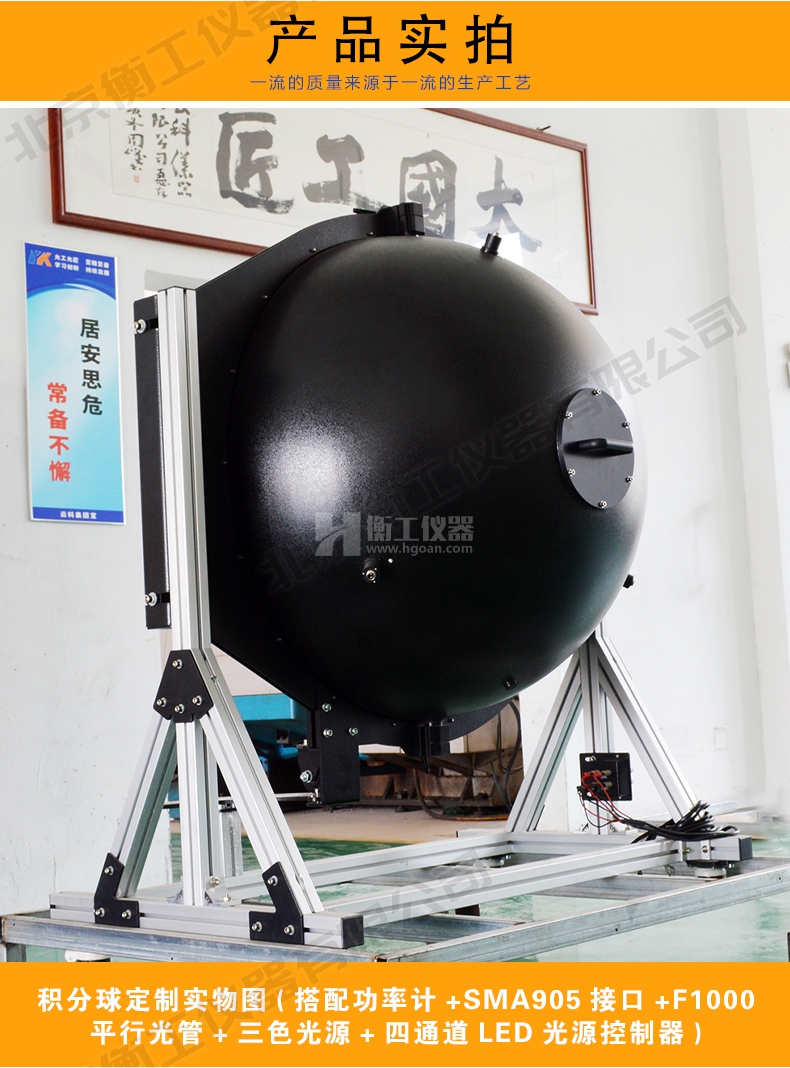 1、積分球直徑1米,出光口200mm,出光口中心高度1.2米,可調(diào)最±20mm。