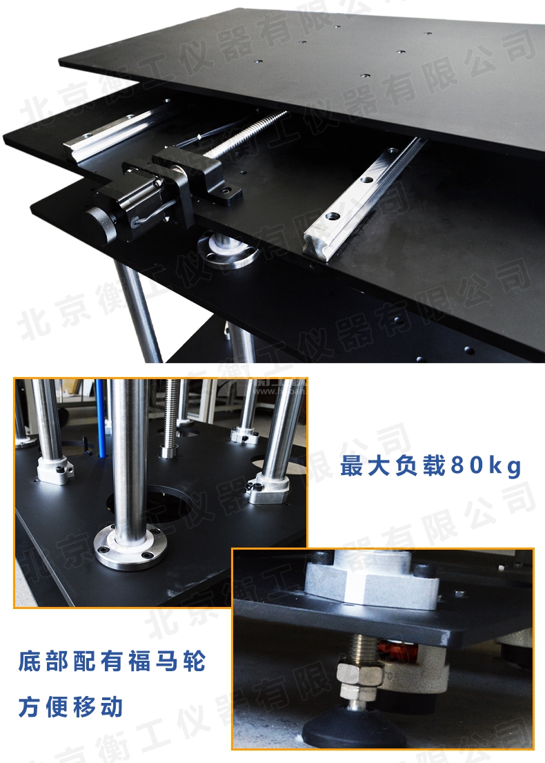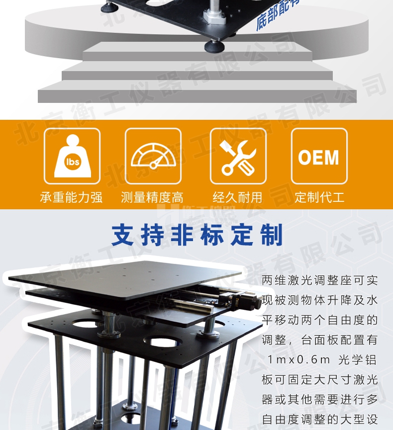 由度的調(diào)整,臺面板配置有 1mx0.6m 光學(xué)鋁板可固定大尺寸激光器或其他需要