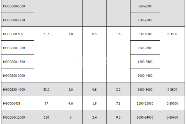 HGISW / HGISU系列單色儀/光譜儀光柵與技術(shù)指標(biāo)對照表