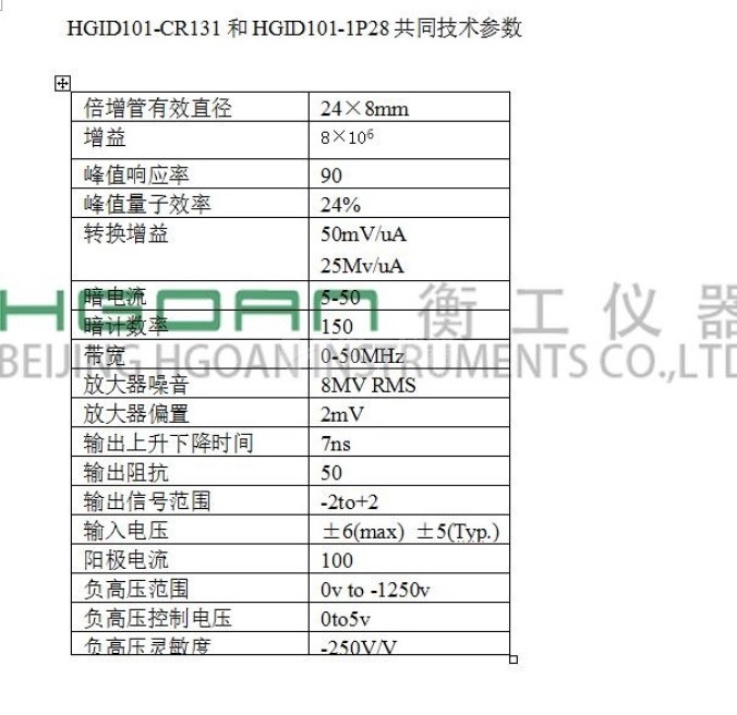 光電倍增管(如光電倍增管室內(nèi)置CR131型光電倍增管,則型號(hào)為HGID101-CR131)