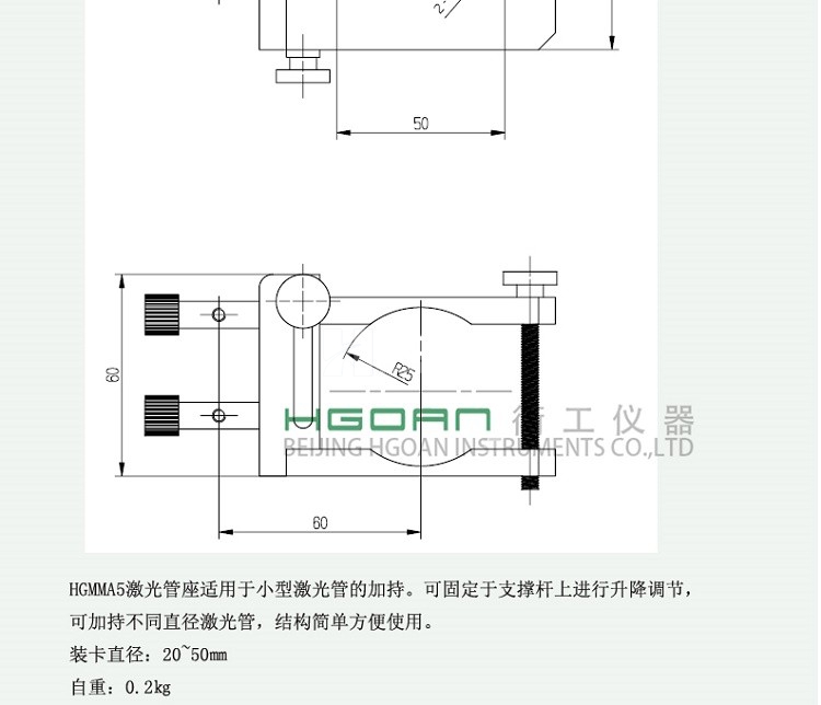 HGMMA5激光座適用于小型激光管的加持,可固定于支撐桿上進(jìn)行升降調(diào)節(jié),可加持不同直徑激光管,結(jié)構(gòu)簡單方便實(shí)用。
