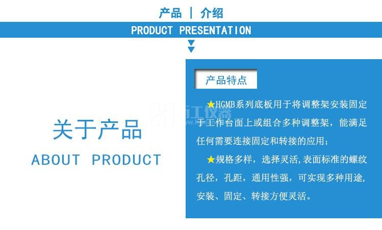 HGMB系列規(guī)格多樣,選擇靈活,表面標(biāo)準(zhǔn)的螺紋孔徑,孔距,通用性強(qiáng),可實(shí)現(xiàn)多種用途安裝、固定、轉(zhuǎn)接方便。