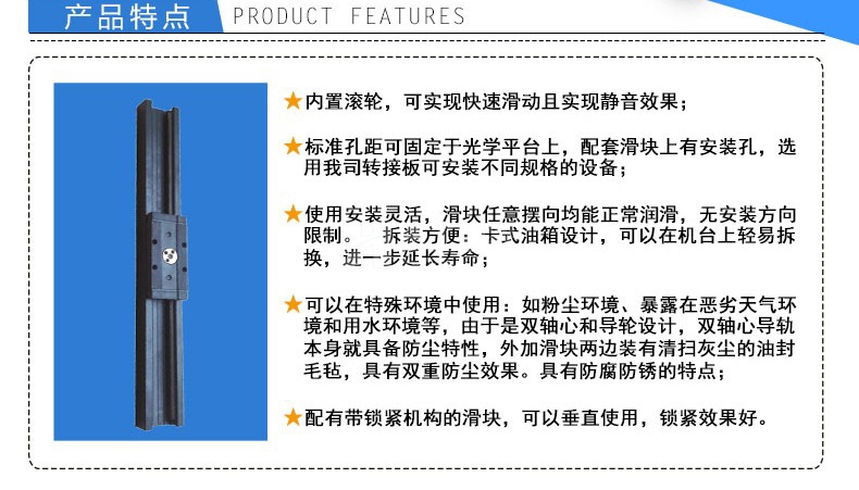 光學(xué)滑軌高速雙軸心滾輪導(dǎo)軌帶鎖緊機構(gòu)刻度滑塊光具座載物臺軌道