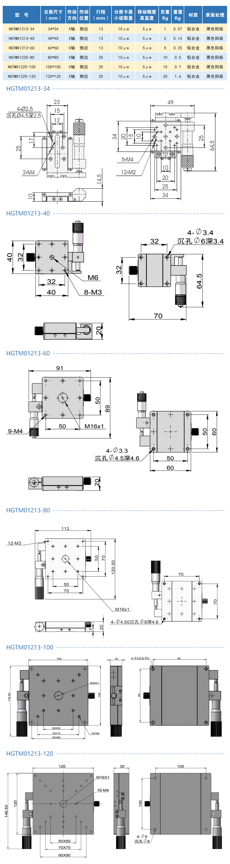精密平移臺(tái)行程15 50 125 200可選手動(dòng)微調(diào)位移臺(tái)滑臺(tái)衡工HGTM05