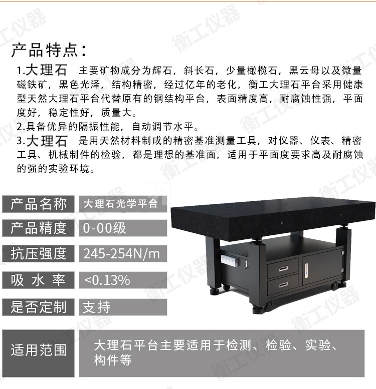 光學柜式大理石平臺00級高檢測臺車間維修儲存臺研究室隔振工作臺
