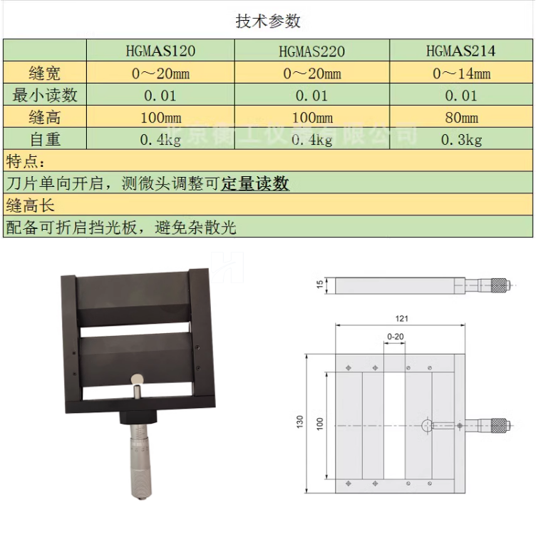 單開啟狹縫精密平口單向調(diào)整通光架手動側(cè)微頭光闌