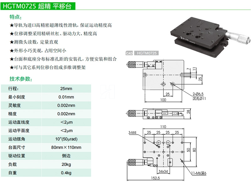 衡工高精度平移臺手動光學實驗微調位移滑臺廠家直銷規(guī)格齊全HGTM0725