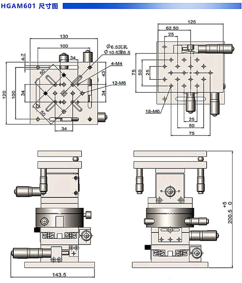 ● 上下部均有標(biāo)準(zhǔn)孔距的連接孔,方便與其他位移臺(tái)連接,組成多維移動(dòng)臺(tái)。
